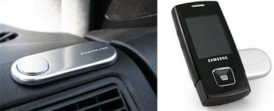 Cupholders have been a standard feature in cars for years now but I have to wonder when manufacturers will start including a better place to put cellphones and PDAs. Sure there’s nothing stopping you from sticking them in the cupholders but it’s going to bang around in there and if you’re like me you hate to see your toys get scratched and dinged. So for the time being there’s a wide selection of automotive accessories designed to hold your gear while driving but this Magnetic Dashboard Mount from Proporta is the first one I’ve seen that doesn’t look like some garish plastic monstrosity.