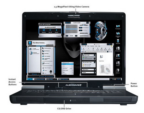 Here’s the Alienware Area-51 m9750. This laptop is powered by Intel Core 2 Duo processor and comes with two 512MB GeForce Go 7950’s using SLI. Area-51 m9750 RAID options enable you to configure your hard drives for speed, or security.