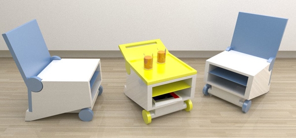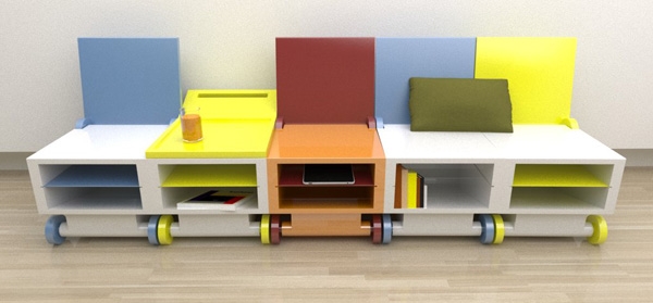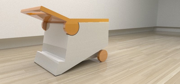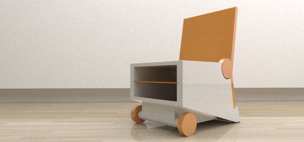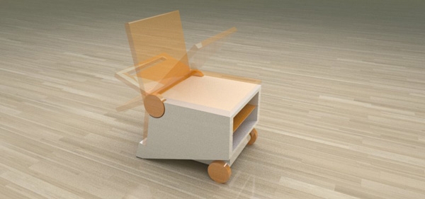 Designer Paulo Corceiro presented a colorful multi-chair Flippo, which can be used as a table. Just need to roll back in his chair. Thanks to the uncomplicated design, and you get a chair and a table that can be easily moved on wheels. Also in the chair, built shelves, which can accommodate magazines, newspapers and books.