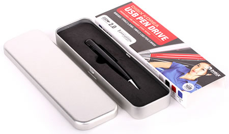 This is what we called the pen drive. It is from Digix a Korea company. It is a ball-point pen that comes with 1GB of memory storage. The USB connector is hidden by the removable cover at the top. The pen is available in four different colors which include silver, black, red and pearl blue.