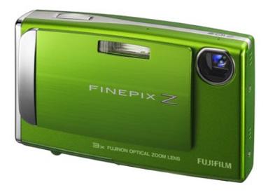 This is the most colorful and cheesy of Fuji‘s camera blitz today. It’s a slim fashion phone that the press release claims, to “flirt with youth.” Never mind the generation Z target demographic, the Z10fd has 3x optical zoom, 2.5-inch lcd, slideshow mode, face detection tech with auto red eye removal, IR beaming, a blogging mode which reduces photo size on cam for EZ downloadin’ to myspace, etc.
