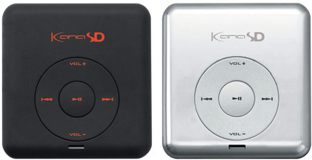 Here’s the KanaSD from GreenHouse. It is basic mp3 player that comes without internal memory but a SD card slot that support a SDHC card up to 8GB. Play, Stop, Volume buttons etc are place in popular click wheel style. It connects via USB 2.0 and can be use as a card reader as well. It measures 56.5×12.8×59.3mm and weighs 26 grams and colored in black or white color. The GreenHouse KanaSD is available for 2,280 Yen ($ 18) in Japan.