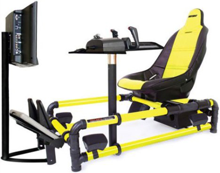 The HotSeats 723 Flight Simulator TRX Game Chair comes loaded with a 23 inch HDTV widescreen LCD monitor, a 1.8GHz Dual Core processor PC, an LCD mount, Dolby 5.1 Surround Sound speakers. with a remote control and subwoofer unit, Logitech wireless keyboard & mouse, cup holder for your drinks, and a swing-away console. It also offers an adjustable video game controller holder and an adjustable sliding seat.