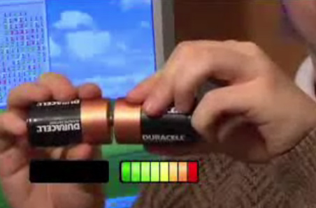 In this Infinite Solutions segment, Mark Erickson is going to show you how to recharge a battery with a battery. In the case, you got a low batt on AA size battery, you can charge with C size or other size. Video after the jump.