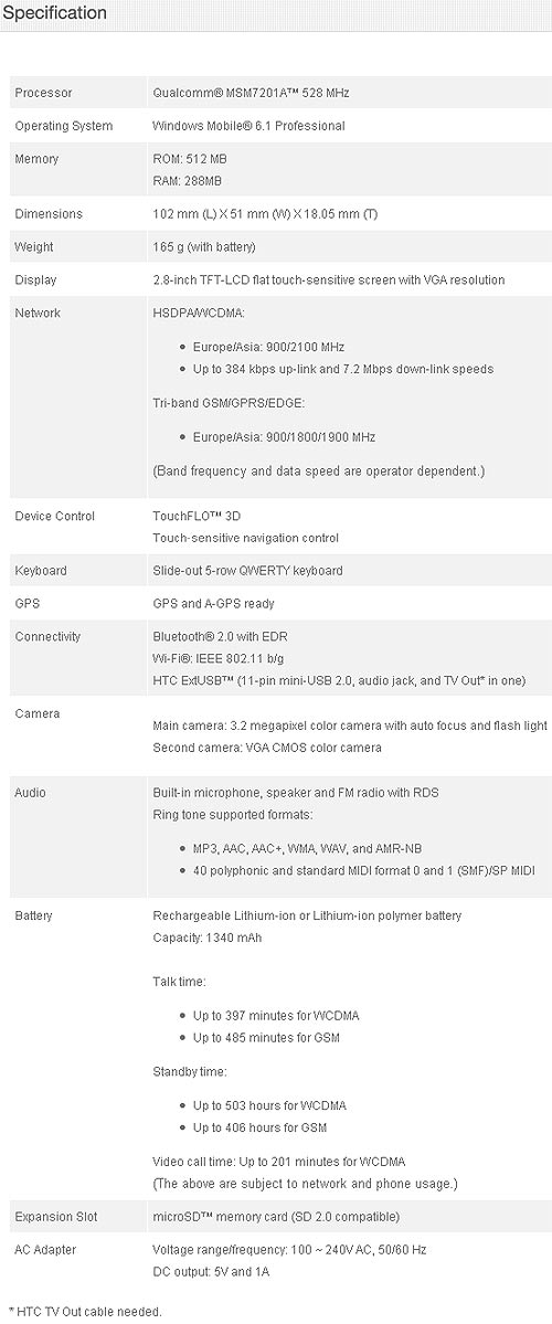 HTC has announced new smartphone called the HTC Touch Pro. The HTC Touch Pro comes with 2.8″ display, 288MB RAM, 3.2 Megapixel Camera, 7.2Mbps HSDPA, Wi-Fi, a fully QWERTY keypad and a slider design. The HTC Touch Pro will be available later this year. scroll down for check out more.