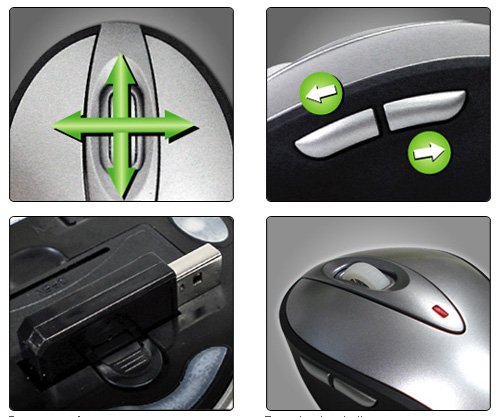 It has all round 360-degree wireless reception with no blind spots, a four-direction scroll-wheel provides quick scrolling up, down and across the page, and a LED indicator to tell you when your battery is low.