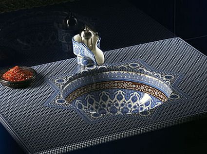The Kohler Artist Editions Top Art Lavatories have brought the eastern splendor right into your conventional bathrooms. Each Top Art Under counter Lavatory makes use of geometric designs to create awesome effects. The collection varies, from the quite monochromatic Tog and Thel, to the magical eastern mosaics of the Marrajesh and the eternal beauty of the Indian Maharani. Each under counter lavatory accompanies a decorative countertop. With the Moorish inspired Marrajesh and the Maharani, there are even matching patterned faucets and counter tops.