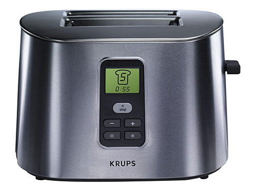 This Krups stainless steel toaster looks like a cross between a flying saucer and a robot’s head , and we’re getting stoked about that LCD screen up front, counting down to that glorious moment when your toast is ready to eat. It also offers eight choices for doneness, including a low-heat defrosting setting that’ll soften up even the most hard-frozen foods.