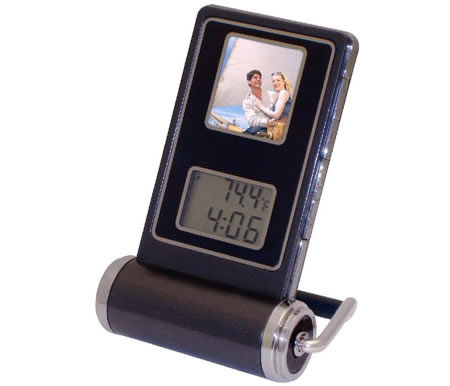 Getting high-tech is easy these days;- gadgets like the Travelfoto from Mustek make it even simpler. A digital photoframe that doubles up as an alarm clock as well is pretty basic. The device boasts of a 1.5″inch, 128 x 128 resolution CSTN LCD color screen, sufficient flash memory to store 70 JPEG or BMP photos (however no MP3 support), a buzzer to wake you from dreamland and stare at reality (or the digi photos).The Travelfoto from Mustek will cost $40 usd and will be out next month.