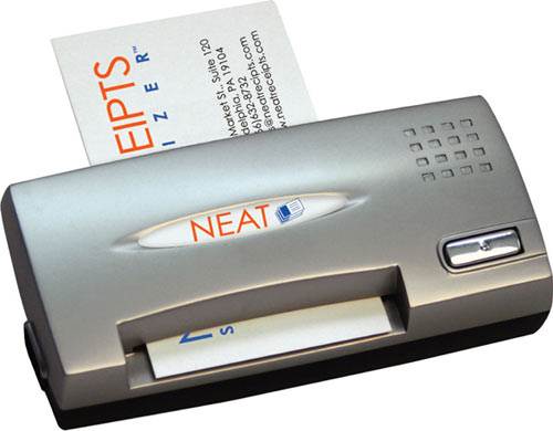 I’ve got a big pile of business cards on my desk that’s built up over the last six months, which I really should to transcribe into the contact list on my computer. But it’s time I admitted it: I’ll probably never get to this tedious, thankless task. Too bad I don’t have a NeatReceipts scanner — this tiny desktop gadget quickly scans a bizcard, digitizing all the info and transferring it to your PC via proprietary software in seconds.