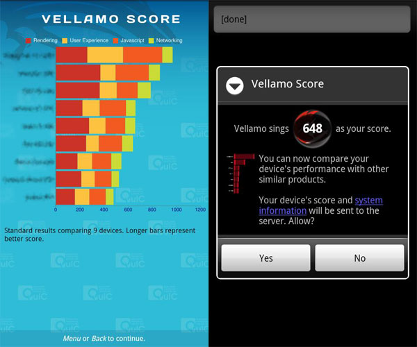 Qualcomm has developed a Vellamo, testing tool for assessing the performance of mobile internet. Available on Android Market app Vellamo, allows users to test the Android mobile device and select the model that has better performance.