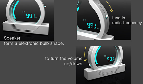 Designer Na Yoon-mi designed radio along with the light in the shape of a bulb. The design is unique that makes the radio very attractive. It can be used as a nightlight for your night stand. The device is user-friendly.