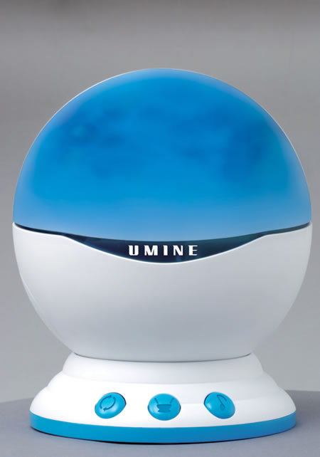 Takara Tomy Japan has released a small projector called Umine that will project the sparklings in sea water to your ceiling along with sounds of waves and chirping birds.