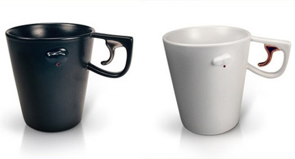 The Gun Mug is designed by the Hong-Kong based design studio ChillyChilly. It’s made in porcelain and available in white with a gold plated trigger and black with a platinum plated trigger. To quote the website: “Go slow in life, kill time with a cup of coffee!”