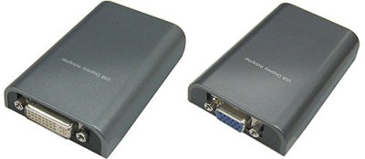 The Kuroutoshikou USB Video Cards are able to display 1440×900 (WXGA+) or 1280×1024 (SXGA) on a separate monitor have a USB 2 port, requires you to have a system with at least a 1.2GHz PIII and a half gig of RAM.You can even use up to 6 of these devices to one computer though your system. What more could you ask for? They come out in Japan late December for a price range between $81-$107